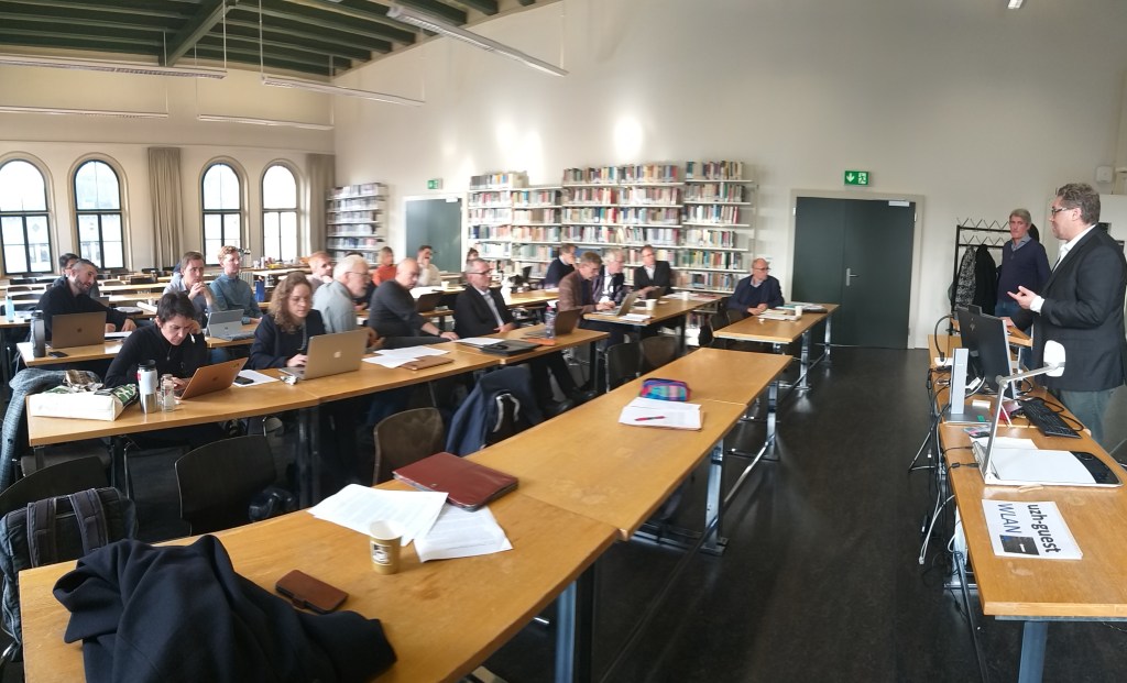 Zu den 25 Teilnehmenden zählte neben den Veranstaltern und Promovierenden beider Lehrstühle eine Reihe von Expertinnen aus der Schweiz (PD Dr. Sabrina Müller, Prof. Dr. Stefan Schweyer), Deutschland (Prof. Dr. Philipp Bartholomä, Hans-Hermann Pompe), Österreich (Dr. Patrick Todjeras), den Niederlanden (Prof. Dr. Stefan Paas, Prof. Dr. Henk de Roest, Prof. Dr. Benno van den Toren), Australien (Prof. Dr. John G. Flett) und Großbritannien (Bischof Graham Tomlin).